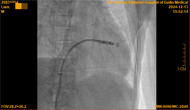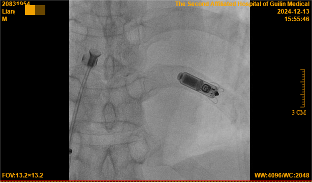 在亲属的介绍下,梁大爷慕名来到桂林医学院第二附属医院心血管内科二病区,找到李静主任医师就诊,经食道电生理检查,梁大爷的心脏病为Ⅱ度二型至Ⅲ度房室传导阻滞,房室结传导功能障碍,需要植入心脏起搏器以维持心脏的正常节律。在李静的建议下,梁大爷面临着一个选择:是传统起搏器,还是新兴的无导线起搏器?经过李静的详细介绍,梁大爷最终选择了无导线起搏器,这一决定不仅为他带来了新的健康希望,也为他的生活带来了极大的改变。