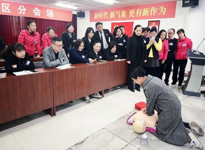 医学模拟中心主任张雨东通过精心准备的课件,对心肺复苏的理论知识进行了详细讲解。随后,医学模拟中心医务人员伍莉为员工们进行了现场实操演示,确保大家都能掌握正确的心肺复苏急救技能。实操环节中,商场员工积极参与,通过亲身体验,进一步加深了对心肺复苏技能的理解和记忆。
