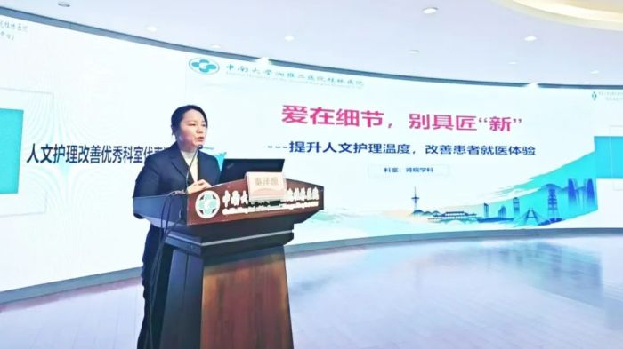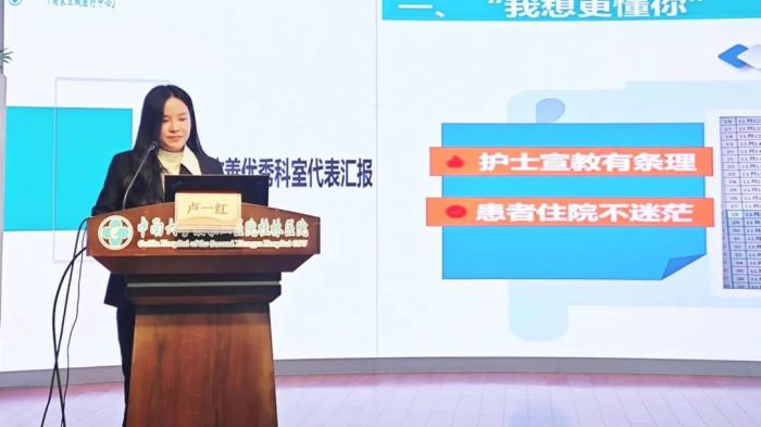 肾病学科、心血管内科作为“人文护理改善优秀科室”,分别进行了汇报。科室代表毫无保留地介绍了各自科室在人文护理工作中的特色举措和成功经验,为其他科室提供了借鉴思路。