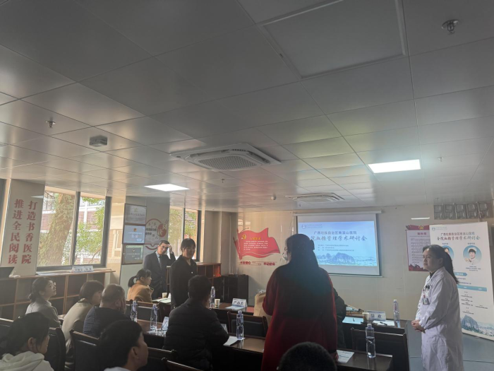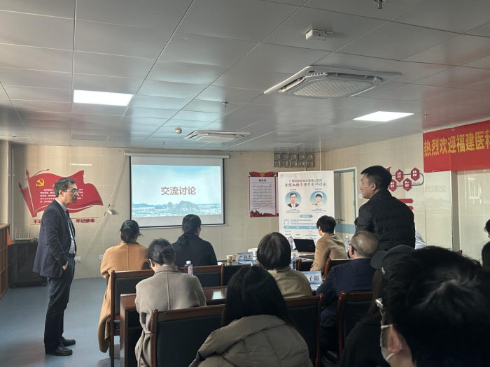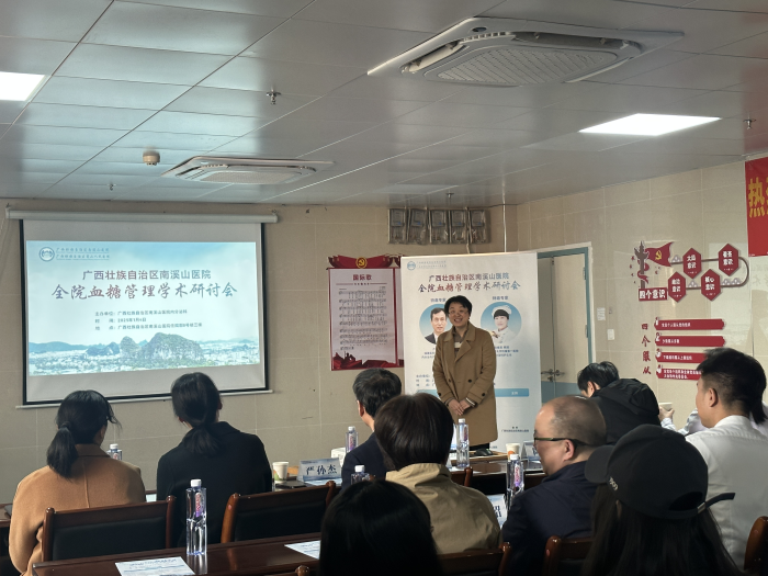 为强化全院血糖管理体系规范化建设,1月4日,福建医科大学附属第一医院严孙杰教授、赵峰英教授受邀参加广西壮族自治区南溪山医院全院血糖管理学术研讨会。南溪山医院医务部主任杨琼、信息科科长陶毅、内分泌科主任徐欢及科室的医生、护士参加了此次研讨会。