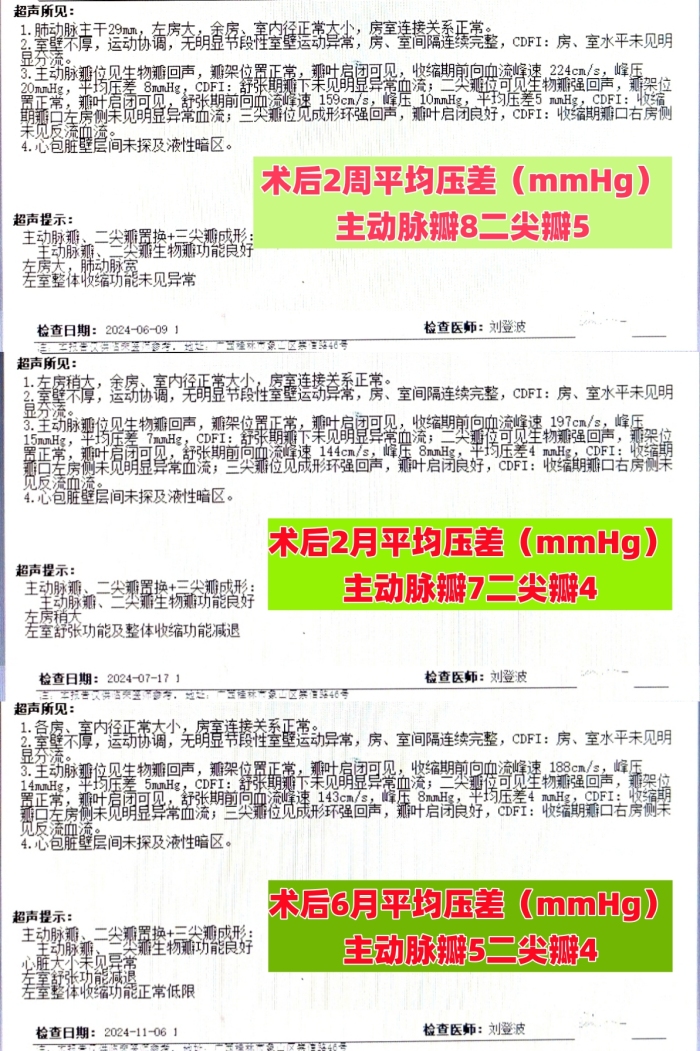 在后续的连续随访过程中,患者的两个瓣膜功能状态良好,达到了术前预期,术后平均跨瓣压差越来越接近完美。