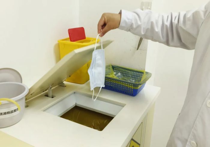 摘下口罩时,同样要先洗手。从耳朵处取下带子,避免触摸口罩的外侧,将用过的口罩放入密封袋或垃圾桶中。
