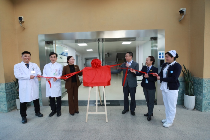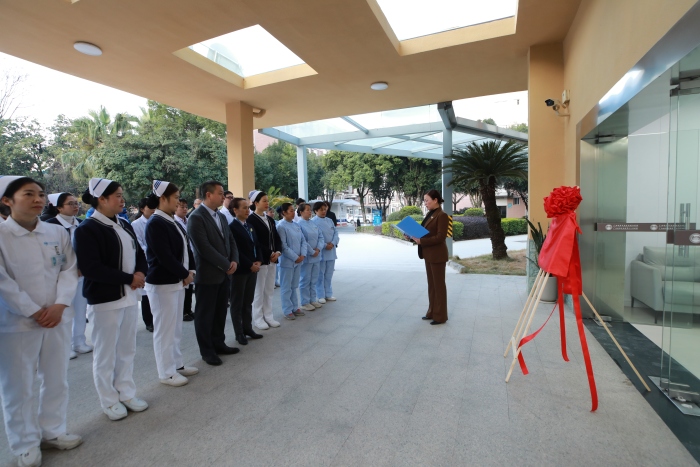 南溪山医院党委副书记、院长李朝旭,副院长唐芬等为试点科室揭牌
