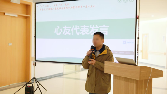 随后,两位手术康复状况良好的心友代表走到台前,用亲身经历讲述了与病魔斗争的心路历程。心友唐先生表示,他很荣幸能够成为桂林医院心血管外科第一位手术患者,四年前心衰住院时医生曾建议开展手术,但因为一些原因拖延至今。听闻桂林医院心血管外科是由湘雅二医院心血管外科专家、经验丰富的周新民主任领导,于是下定决心在此手术。10月11日这天,他顺利接受了二尖瓣置换手术。住院期间,他感受到医院环境干净、医护人员贴心。出院后,医护人员还经常回访并给予专业的指导,他对此深表感激。