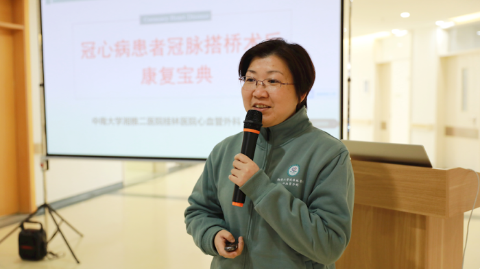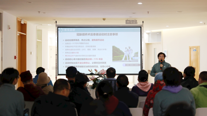 此外,心血管外科还为心友们带来了健康知识小讲课。谭凌教授从自我评估、控制血压、调整血脂、管理血糖、戒烟、合理饮食、适当运动和关注体脂这八个方面为大家讲解了“冠心病患者冠脉搭桥术后康复宝典”,随后张鸿主任为大家介绍了“华法林抗凝的个体定制和居家管理”,护士廖佳西胡给大家带来了“心脏患者术后回家怎么吃”的详细介绍,现场的心友们都热情高涨、积极学习记录。
