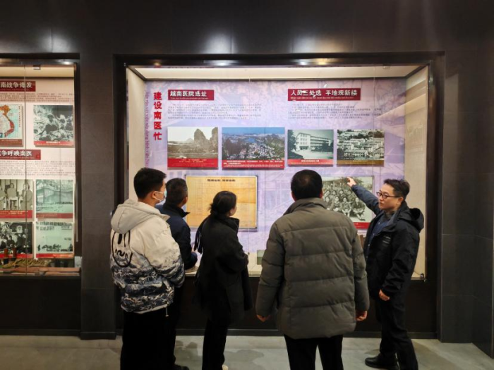 随后,双方进行了党建工作经验的交流。在南溪山医院院史陈列馆,龚星光主任给来宾市人民医院的同行们,介绍了南溪山医院的厚重历史文化背景。