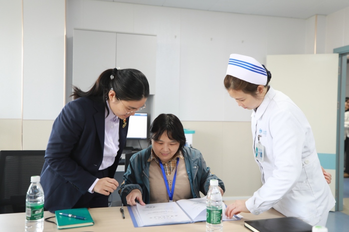 南溪山医院医务部主任杨琼向专家组简要介绍了临终关怀科的基本情况以及科室在安宁疗护服务方面的特色举措。随后,专家组依据相关标准,对科室的硬件设施、医疗流程、人员配备、感染防控等方面展开了细致入微的现场审查。在硬件设施方面,专家们查看了病房的布局、设施的配备是否符合安宁疗护患者的特殊需求;医疗流程上,重点审查了患者评估、治疗方案制定以及转诊等环节的规范性;人员配备的考察中,对医护人员的资质、专业培训情况进行了核实;感染防控工作则通过查看科室的消毒记录、防护措施落实情况等进行评估。