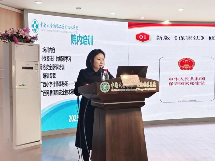 在信息安全日益成为社会发展的重要基石的今天,保密工作不仅是国家安全的需要,也是医疗机构稳健运行、保护患者隐私不可或缺的一环。为树立和践行总体国家安全观,坚定不移地维护国家安全,进一步增强保密意识,提高保密工作管理规范化水平,中南大学湘雅二医院桂林医院于近日邀请了广西小宇律师事务所的资深律师,举办了一场面向全院职工的“新版《中华人民共和国保守国家秘密法》解读学习”专题培训。