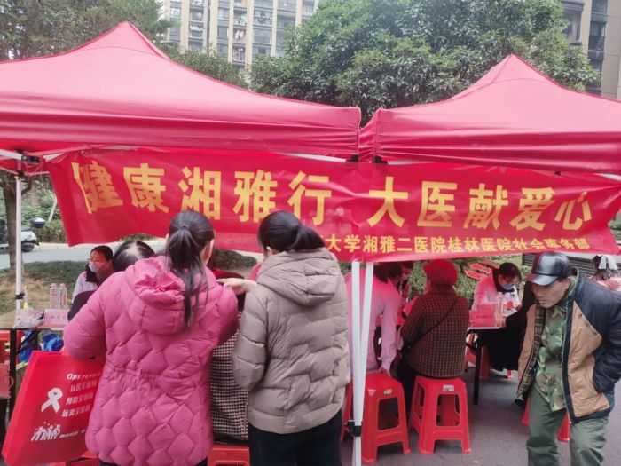 在2025年新春佳节来临之际,中南大学湘雅二医院桂林医院联合临桂区盘山社区、滟澜山物业公司,开展了一场别开生面的“健康湘雅行,大医献爱心”新春惠民义诊活动。“健康湘雅行,大医献爱心”。此次活动旨在进一步贴近人民群众,为社区居民提供便捷、优质、高效的健康生活指导和医疗保健服务,展现医院作为国家区域医疗中心的社会责任与担当。