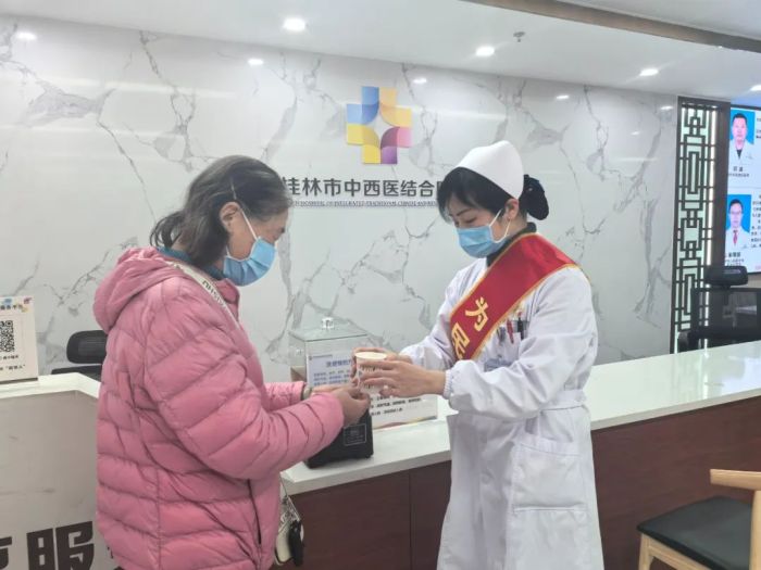 寒冬季节,气温骤降,是呼吸道传染病的高发季节。桂林市中西医结合医院始终心系患者健康,为了进一步增强大家的免疫力以预防流感,特在门诊大厅为患者免费提供了精心配制的中药防流感茶饮,供前来就诊的患者及家属饮用。
