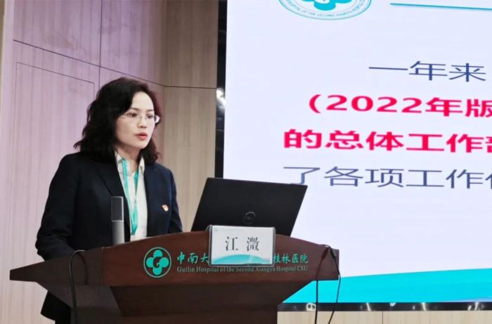 江溦副主任就2024年度护理质量与安全工作进行总结,通过图片、数据、图表等形式对全院护理质量进行分析,并针对护理管理中的薄弱环节提出整改意见和具体举措。
