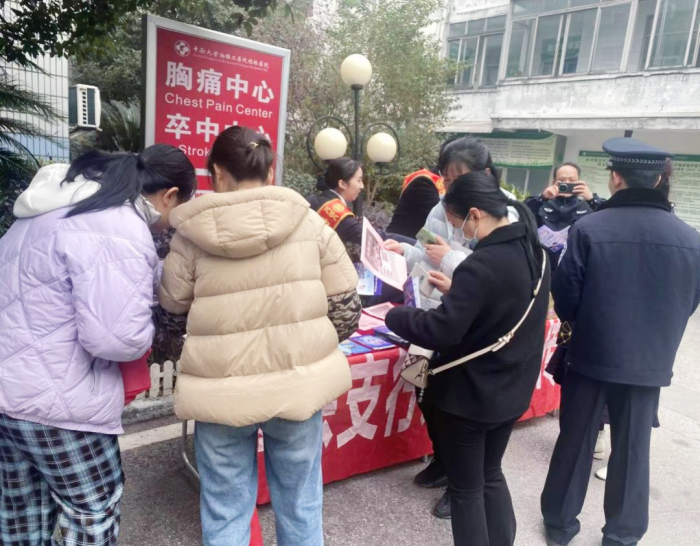 医院是救死扶伤的重要阵地,却时常有诈骗分子试图利用其特殊的环境和人们的焦虑心理,进行不法行为。为了提高医患的反诈骗意识,近日,中南大学湘雅二医院桂林医院医保财审党支部联合叠彩公安分局反诈中心在医院开展反诈宣传活动,为医患双方筑起了一道坚实的“防骗墙”。