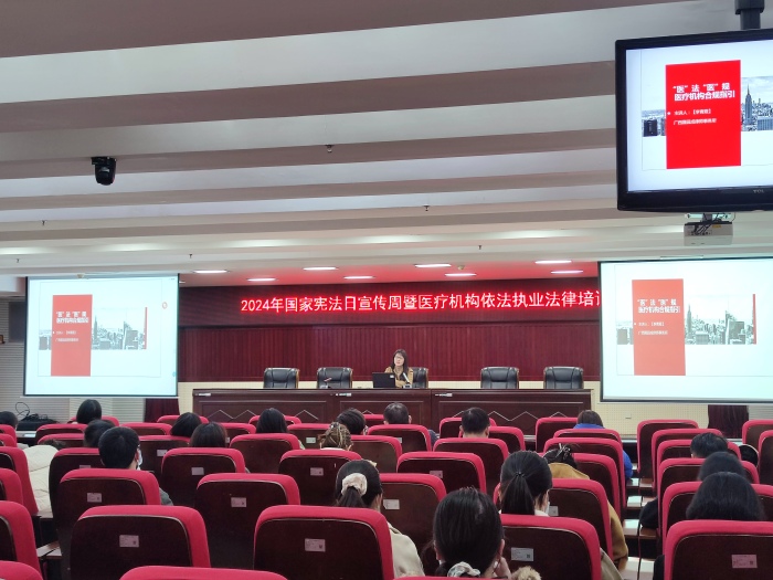 12月9日,在第11个国家宪法日来临之际,为弘扬宪法精神,提高医务人员法律意识,桂林市中医医院举办“宪法宣传周”医疗机构依法执业法律培训班。