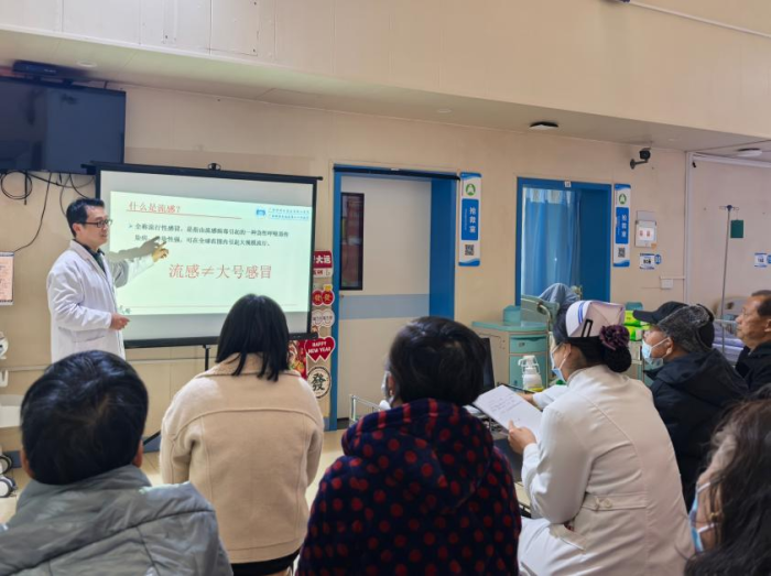随着冬春季节交替,流行性感冒(简称“流感”)进入高发期,某知名艺人近日死于流感所致的肺炎的新闻也给大家不小的震撼。为加强患者及家属对流感的认识与预防能力,广西壮族自治区南溪山医院感染性疾病科于近日成功举办了流感患教会。此次活动旨在通过专业讲解与互动交流,提高大众对流感的认知水平,共同守护健康。