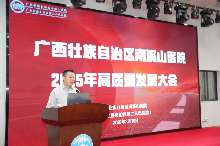 为精准布局2025年重点工作,助力医院高质量发展,2月10日,广西壮族自治区南溪山医院召开2025年高质量发展大会,医院全体院领导、中层干部出席大会,共同谋划医院未来发展的新蓝图。医院党委副书记、院长李朝旭主持大会并讲话。