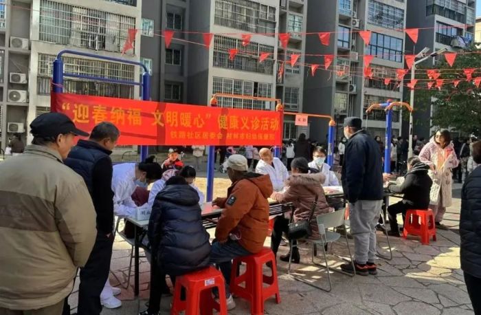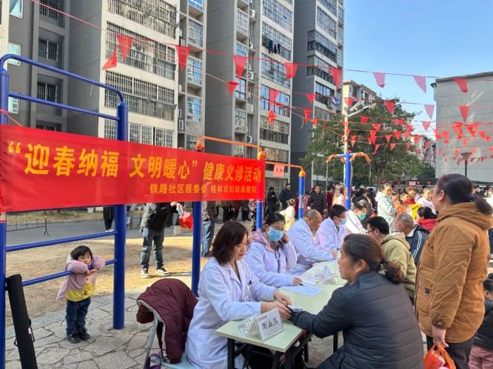 1月12日上午,一场主题为“迎春纳福 文明爱心”的健康义诊活动在铁路社区温情开展,为社区居民带来了冬日里的温暖与关怀。此次活动由桂林市妇幼保健院联合铁路社区居委会共同举办,旨在将优质的医疗服务送到居民家门口,提升居民健康意识,同时营造欢乐祥和的新春氛围。