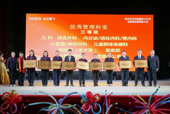 活动现场,院党委副书记、院长卢浩华宣读《桂林市妇女儿童医院关于表扬2024年先进集体和优秀个人的决定》,领导及嘉宾分别为获奖科室及获奖者颁发证书。
