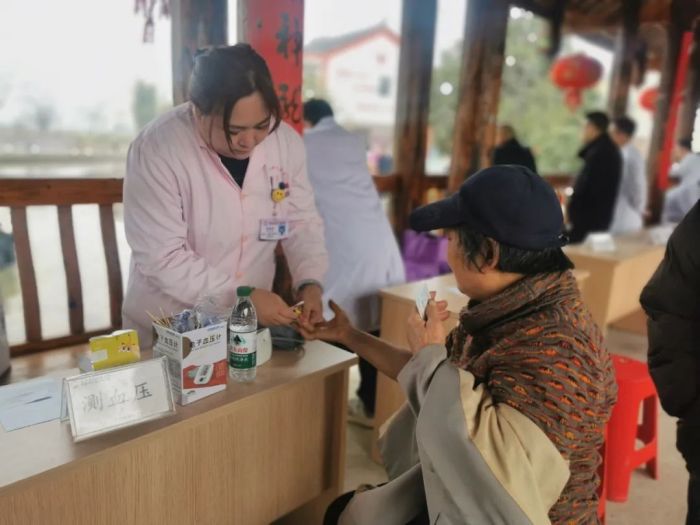 在忙碌的义诊间隙,医护人员还为群众免费测量血压、血糖,普及冬季疾病预防和春节期间饮食健康知识,提升群众的健康意识。