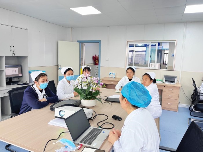 南溪山医院内科第二十党支部第一次全体党员大会圆满落幕。支部书记张海莲要求各位党员,牢记党的宗旨,坚定理想信念,加强党员之间的沟通与协作,各自发挥特长,凝心聚力,团结做事,她特别强调,安宁疗护中心病区不同于普通病房,个人的言谈举止,行为规范都要给予患者及家属真诚和关爱,让患者及家属感受温暖和希望。