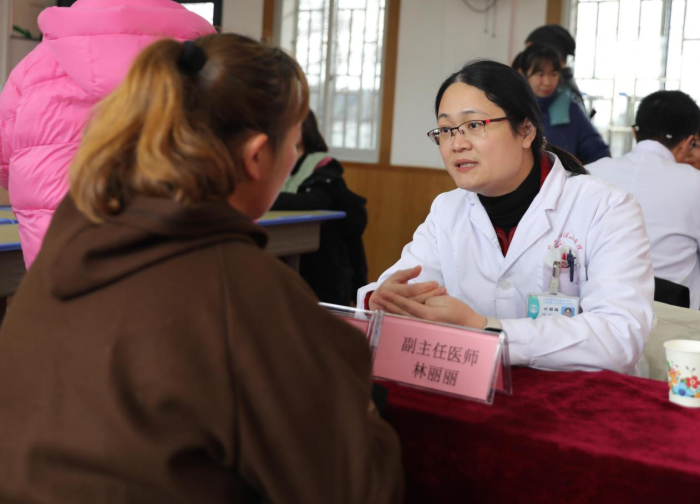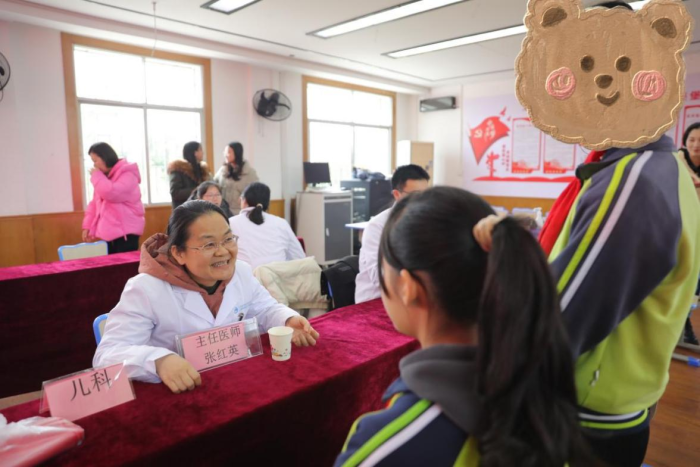义诊现场,专家团队根据教职工需求,设立妇科、骨科、耳鼻喉科、儿科及健康咨询专区,提供全面诊疗和健康指导服务。妇科副主任医师林丽丽耐心解答女性教职工妇科问题,提出个性化诊疗建议;关节外科与运动医学科副主任彭伟通过触诊、体态评估,为教师分析颈肩腰腿痛病因,传授保健技巧;耳鼻喉科副主任医师李潮利用便携式设备筛查常见职业病,普及科学防护知识;儿科主任医师张红英为教师解答孩子生长发育疑惑,为学生进行健康问诊;国际健康管理中心团队由张海娇博士领衔,为教职工解读体检报告,制定健康管理方案,测量血糖血压。