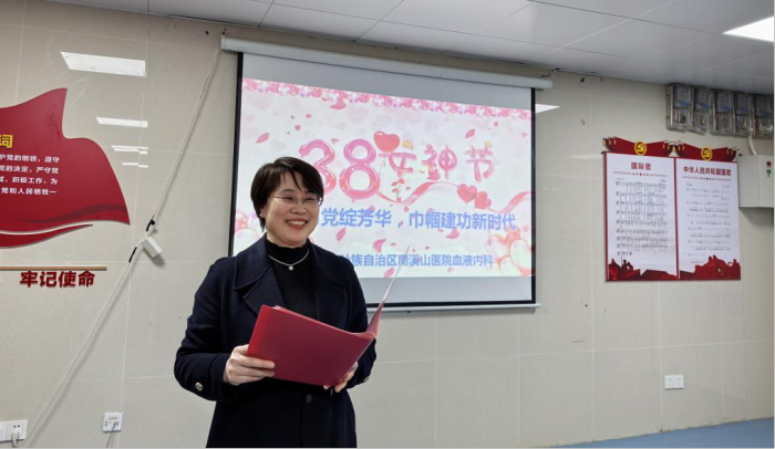 为丰富医务工作者的文化生活,增强科室凝聚力,同时向女性医务工作者致以节日的问候,3月5日下午,在第115个三八国际妇女节来临之际,南溪山医院内科第七党支部暨血液内科组织开展了以"医心向党绽芳华,巾帼建功新时代"为主题的党建活动。