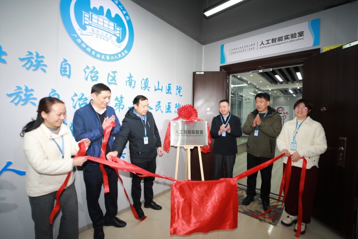 3月17日,广西壮族自治区南溪山医院举行人工智能实验室揭牌启用仪式。南溪山医院党委副书记、院长李朝旭,纪委书记喻泽军,副院长胡长付与相关职能科室负责人共同为南溪山医院人工智能实验室揭牌,标志着该院在智慧医疗领域迈出了坚实的一步。