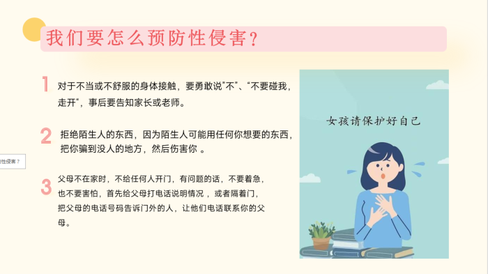 讲座围绕青春期女生心理健康、早恋的影响、性传播疾病的预防、避孕与性保护方法以及如何自我保护--识别和防范性侵犯等内容展开。主讲人庾广聿主任医师结合临床案例,用通俗易懂的语言向学生们讲解了青春期的相关知识,并强调了性健康的重要性。她提醒同学们:“青春期是人生的重要阶段,了解自己的身体和心理变化,学会保护自己,是每个人成长的必修课。”