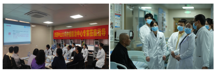 会后,中山大学肿瘤防治中心专家团队还一起深入病房开展联合查房,深化MDT理念。针对不同类型头颈部肿瘤的复杂病例,双方专家团队共同探讨治疗方案,结合新辅助化疗、靶向及免疫治疗、手术等方案,制定了个体化诊疗策略。专家们指出,MDT模式下,外科与内科治疗的时序选择、功能保全与肿瘤根治的平衡,是提升疗效的关键。
