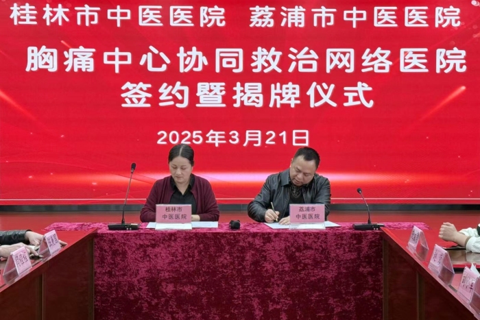 为深化桂北地区中医系统胸痛救治网络建设,3月21日,桂林市中医医院与荔浦市中医医院签署联合救治合作协议,共同构建胸痛救治体系,为基层群众筑起心血管健康防线。桂林市中医医院副院长冯丽平、王维亮,荔浦市中医医院院长邱祖标等出席活动。
