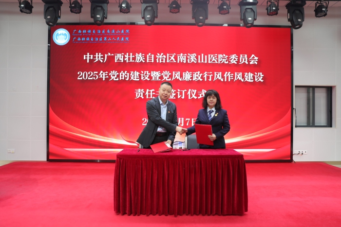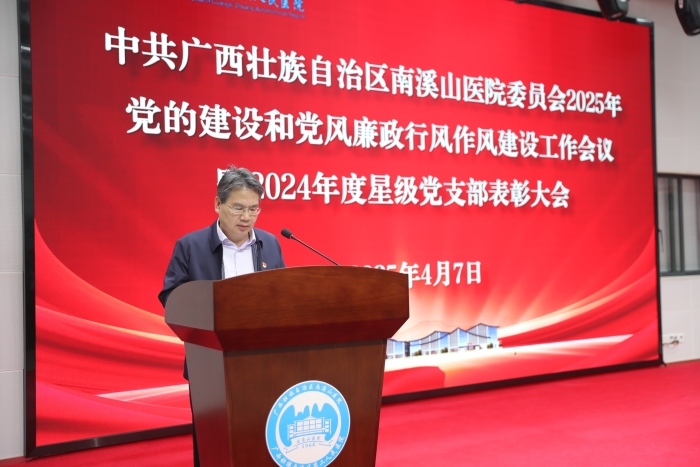 会上,医院党委表彰了2024年度星级党支部和桂林市“四强”党支部,医院党委委员、纪委书记喻泽军传达上级会议精神并讲党风廉政专题党课,院领导分别签订《2025年度党的工作和党风廉政建设责任书》《2025年度意识形态工作责任书》,医院党支部书记代表就落实党风廉政建设“一岗双责”作表态发言,医院党委书记柳宏林总结2024年党委工作,并部署2025年工作任务。