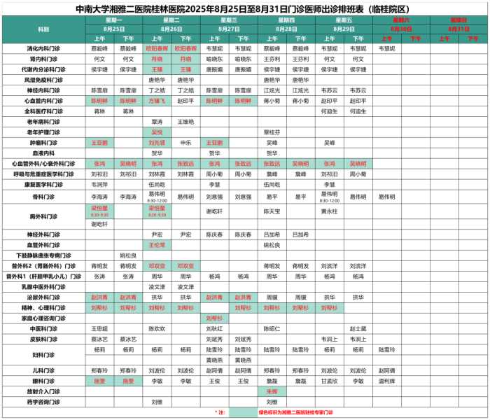 最新门诊安排情况