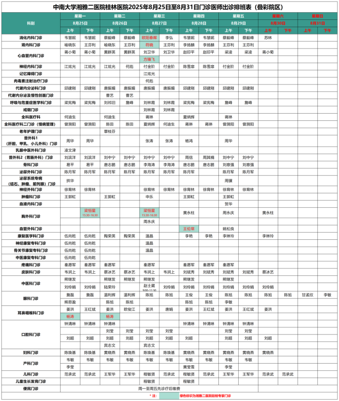 8月25日-8月31日门诊信息