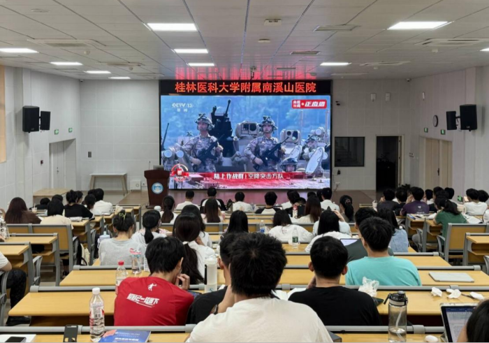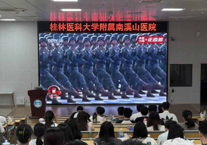 9月3日上午,南溪山医院的桂林医科大学“南医班”全体医学生及班主任于本科班教室观看了纪念中国人民抗日战争暨世界反法西斯战争胜利80周年阅兵仪式,此次活动让医学生们深受鼓舞。