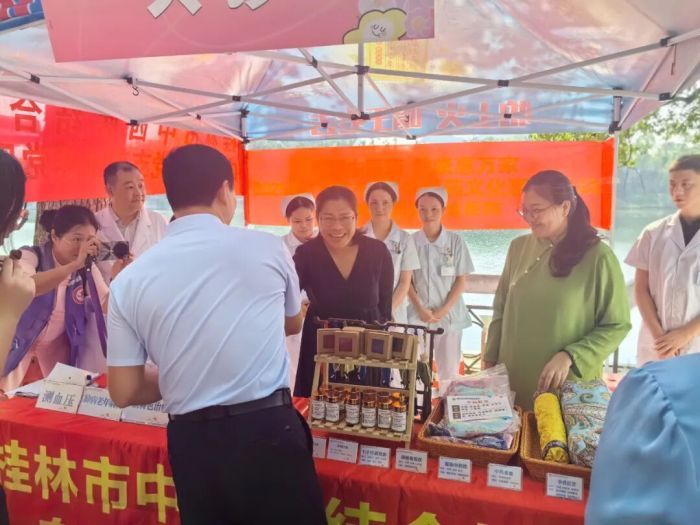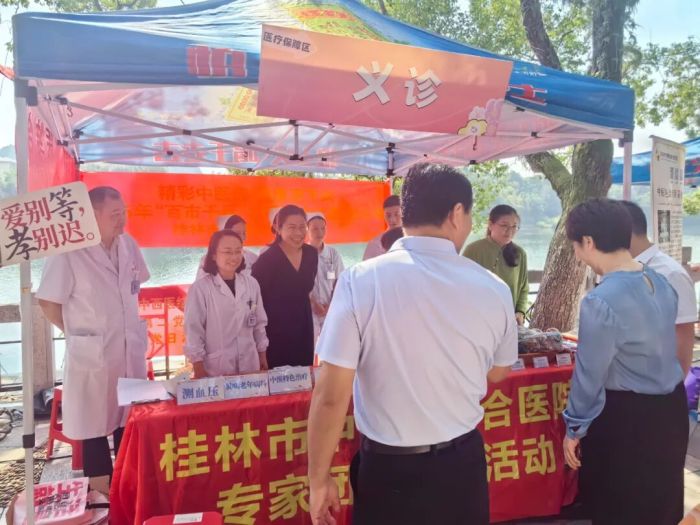 金秋送爽,丹桂飘香。为大力弘扬中华民族尊老敬老的传统美德,积极响应桂林市老龄委、桂林市民政局的号召,10月10日至12日,桂林市中西医结合医院精心组织医疗专家团队及中医药文创产品,精彩亮相2025年桂林市“敬老月”活动启动仪式暨“山水颂华诞·桂香敬银龄”公益市集,为我市老年朋友送上了一份兼具专业与温情的“健康大礼包”。