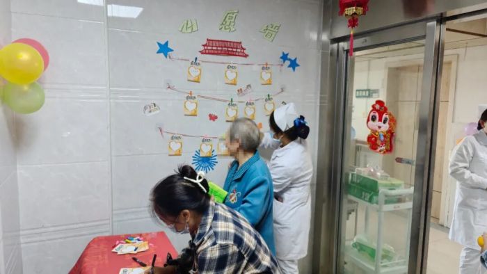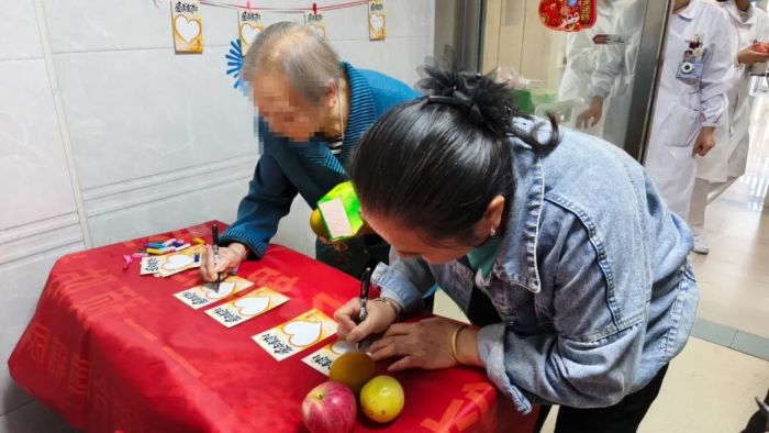 活动尾声,医护团队为每位老人及家属送上祈愿卡片,大家写下对健康长寿的美好祝愿,共同拼贴成一面温暖的“祈愿墙”,寄托着老人们对幸福晚年的共同期盼。