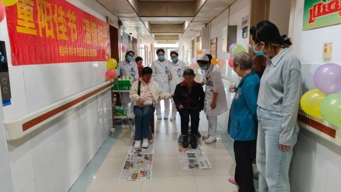 为增添节日乐趣,科室还组织了多项适合老年人的互动游戏。“旱地钓鱼”锻炼手眼协调,“报纸跑酷”激发下肢活力,“盲盒猜物”唤醒触觉认知。老人们积极参与,笑声不断,在轻松愉快的氛围中增进了与医护人员的情感交流。