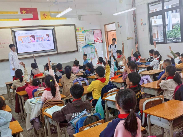 为关爱青少年儿童身心健康成长,帮助其科学认知成长阶段的身体变化,消除生理认知误区,2025年10月28日下午,桂林医科大学第二临床医学院菁华志愿服务团220余名师生宣讲员走进桂林市临桂区麓湖小学,开展以“解锁成长密码,守护生理健康”为主题的宣讲活动。220余名师生宣讲员进入小学35个班级,给全校1900余名小学生进行授课。