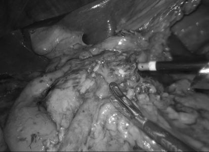 手术如期进行。如术前所预料,腹腔镜探查可见腹腔内粘连明显,周边组织界限模糊。手术团队凭借丰富的经验和精湛的技艺,耐心细致地一点一点分离粘连,如同“抽丝剥茧”,逐步恢复了正常的解剖层次。在清晰暴露手术视野后,团队严格按照根治原则,精准完成了右半结肠系膜的游离、血管的高位结扎、淋巴组织的彻底清扫以及消化道重建。整个手术过程流畅,出血量极少,成功避免了邻近脏器的副损伤。