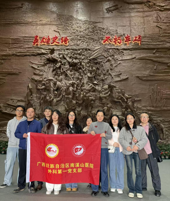 义诊活动圆满结束后,党支部组织医疗团队前往红军长征湘江战役纪念馆参观学习。一件件珍贵文物、一张张历史照片,带领着医务人员们重温湘江战役的峥嵘岁月,深刻感悟革命先烈为坚守信仰、捍卫革命事业浴血奋战、向死而生的崇高精神,真切体会“革命理想高于天”的精神内涵。