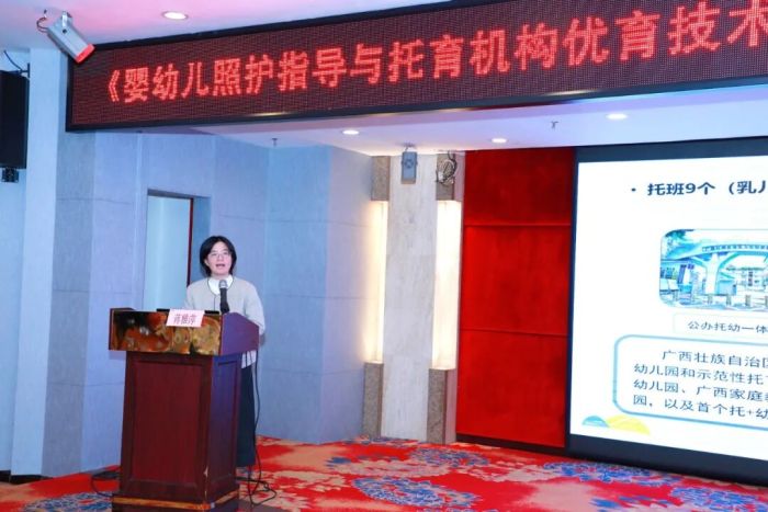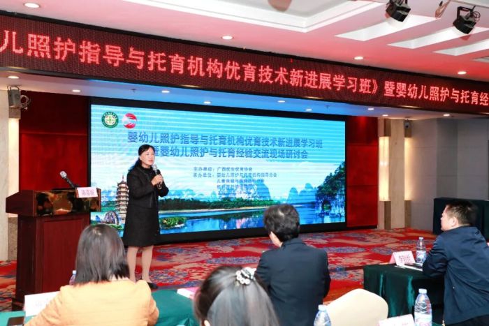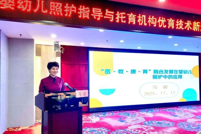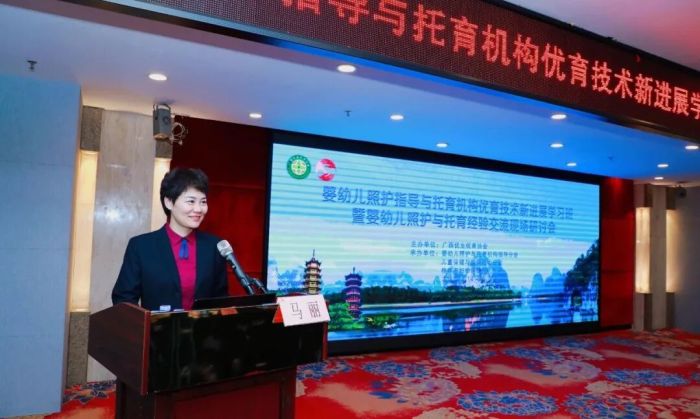 开班仪式由儿童保健与疾病防治分会会长王群主持。桂林市妇幼保健院副院长、婴幼儿养育照护与托育机构指导分会会长马丽在致辞中表示,在协会及上级部门的指导下,医院始终以婴幼儿健康为核心,积极发挥专科优势,探索托育服务新模式,通过专业培训、技术指导与多元服务,为家庭和机构提供全方位支持,为婴幼儿的未来筑牢根基。