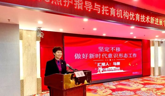 年会环节,分会会长马丽回顾总结了过去一年的工作,并以《坚定不移做好新时代意识形态工作》为题讲授党课,强调以党建引领婴幼儿照护与托育工作高质量发展。