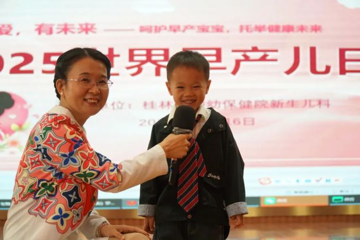 活动在温馨的氛围中拉开帷幕。医院副院长韦毅在致辞中向所有坚韧成长的早产宝宝及一路守护的家庭表达了最亲切的问候与敬意,并向用专业与爱心创造生命奇迹的新生儿科团队致以诚挚感谢。她指出,中国每年有近200万早产儿出生,作为桂林地区救治核心,医院不断刷新救治纪录,成功救治孕周仅23周、体重470克的超早产儿,但今日不谈成绩,只为这场充满欢笑与感动的团圆。