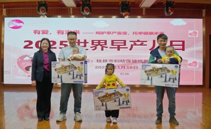 11月16日上午,在“世界早产儿日”来临之际,桂林市妇幼保健院门诊六楼会议室里暖意融融,一场以“呵护早产宝宝 托举健康未来”为主题的欢迎“早产儿回家”公益活动温情上演。数十个曾经在生命起点经历挑战的“早到天使”家庭重返这个承载着他们最初生命记忆的“家”,共赴一场期盼已久的温情之约。