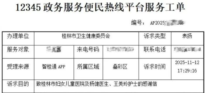 “本以为周末办不了体检,申博要泡汤了!没想到桂林市妇幼健康体检科的医护人员这么给力!”近日,桂林市12345政务服务热线收到一封特殊的感谢信,正在申请博士的广西师范大学的研究生小琳(化名)实名点赞桂林市妇幼保健院健康体检科杨健医生、王美玲护士,称赞他们用专业与担当解决了自己的燃眉之急。