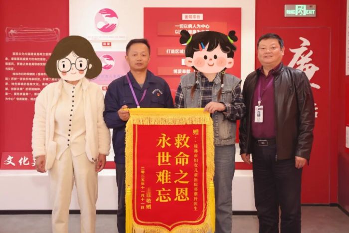 11月14日下午,桂林市妇女儿童医院上演了感人一幕。一面鲜红的锦旗,被郑重地交到该院职工邓潮铃手中。赠送锦旗的,正是他不久前从漓江中救起的轻生少女及其母亲。“恩人,我们总算找到您了!您救了孩子,也救了我们全家!也格外感谢医院培养出这么有担当的好职工!”少女母亲紧握邓潮铃的手,哽咽难言。这面锦旗,为一段发生在漓江边的英勇事迹,画上了温暖的句号。