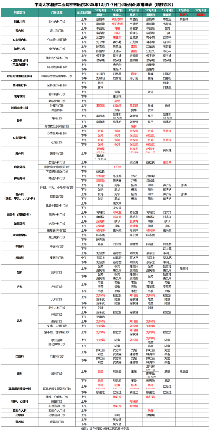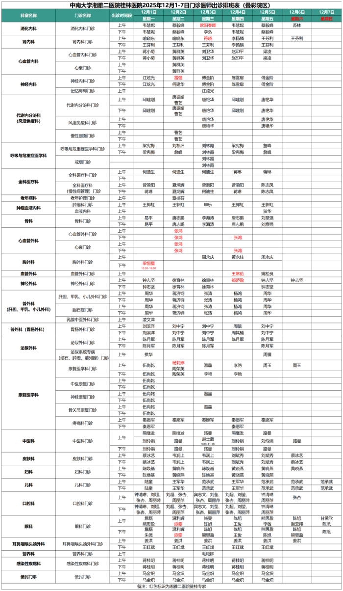 12月1日-12月7日门诊信息
