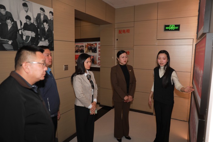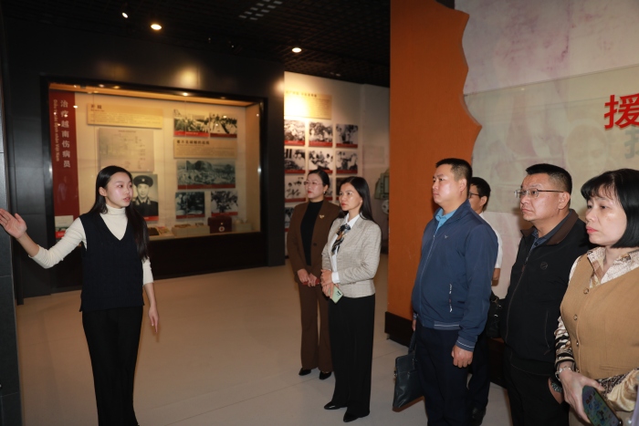 在讲解员的带领下,越南代表团参观了南溪山医院大礼堂和院史陈列馆。馆内陈列着丰富的历史图片和实物资料,生动展现了医院自成立以来的发展脉络,以及在医疗救治、学科建设、国际合作等方面取得的成就。代表团成员认真听取讲解,并不时就医院的历史沿革、医疗服务、对外交流等内容进行询问。