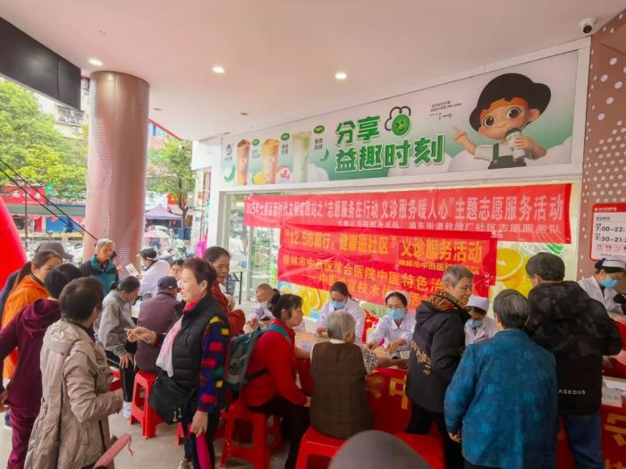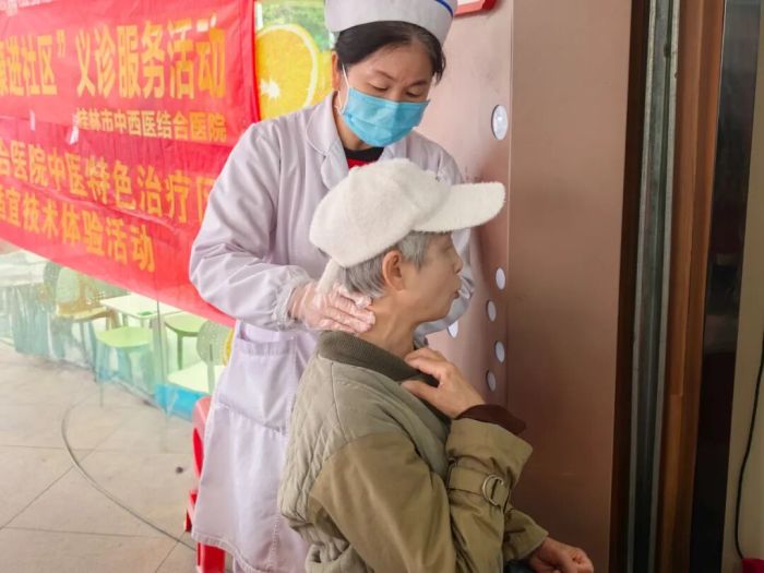 在第40个国际志愿者日来临之际,为深入践行“奉献、友爱、互助、进步”的志愿服务精神,推动优质医疗资源向社区延伸,12月4日,桂林市中西医结合医院组织医疗专家志愿者团队走进七星区漓东街道轮胎厂社区,开展了一场以“12.5志愿行,健康进社区”为主题的义诊服务活动。通过志愿服务,将优质、便捷的医疗健康服务送到了居民家门口,让群众近距离体验和了解中医传统疗法的独特魅力和实用价值。