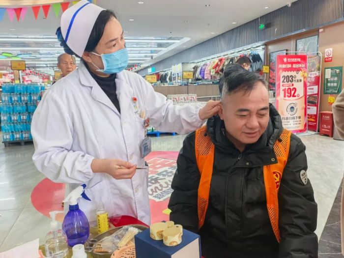 活动现场,来自医院心血管内科、骨伤科、老年病科、泌尿外科、耳鼻咽喉科等多学科专家及护理人员组成的志愿服务队不仅为居民提供了全面的健康咨询、专科疾病筛查及免费血压测量,更精心设置了中医适宜技术体验区,现场演示并推广浮针、火龙罐、雷火灸、刮痧、艾灸等特色疗法。