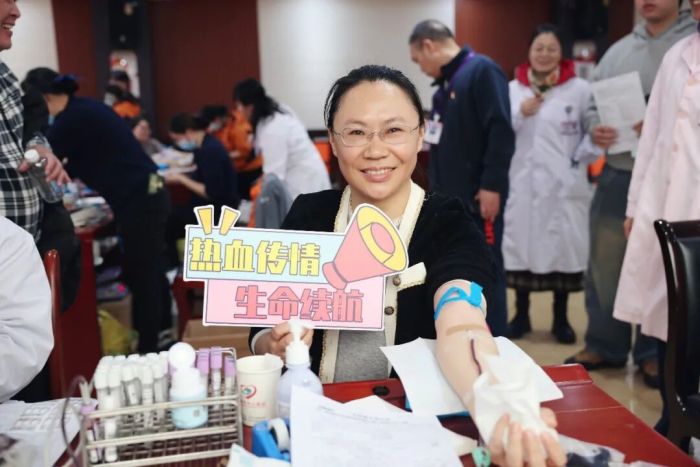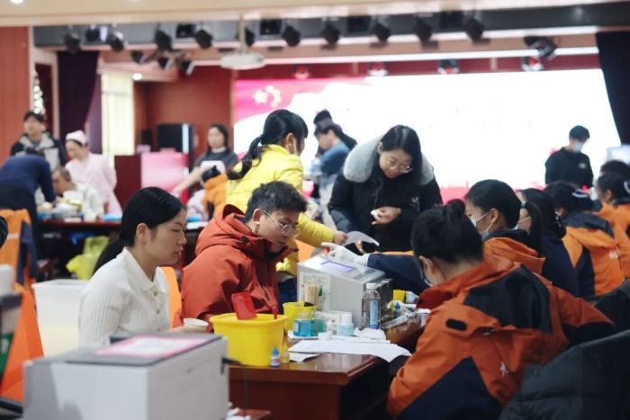 活动当天,医院职工及家属朋友踊跃参与,在血站工作人员与医院志愿者的有序引导下,大家依次完成登记、咨询、检测与筛查,流程顺畅、气氛温馨。院领导率先垂范,党员干部、一线医护、行政后勤人员纷纷挽袖奉献,更有多位职工携带亲友、甚至领着孩子一同前来,以行动传递爱心,用奉献树立榜样。
